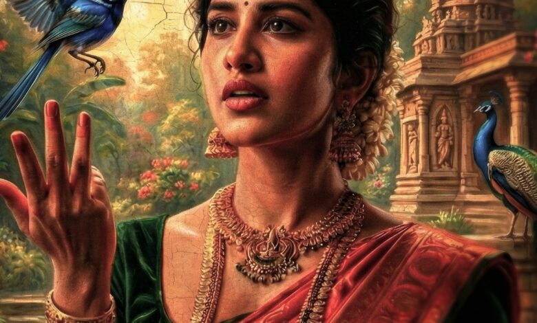 போஸ்டரில் படத்தின் தரத்தை களத்தை வெளிப்படுத்தும் வகையில், நாயகி அருகே நீல நிறப் பறவை, ஒரு பிரம்மாண்ட மயில் மற்றும் கோவில் பின்னணி இடம் பெற்றுள்ளன. ‘பார்வதி’ கதாபாத்திரத்தின் ஆன்மிக அடையாளத்தையும், படத்தின் கருப்பொருளையும் இந்த ஒரே போஸ்டர் அழகாக எடுத்துரைக்கிறது.