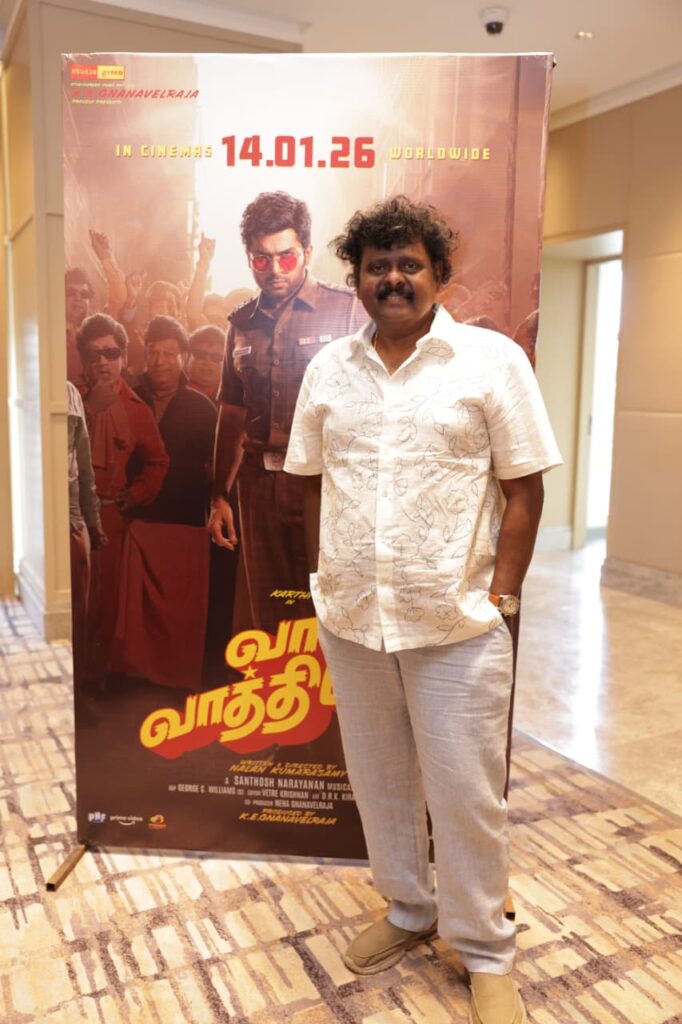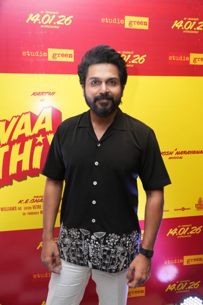 இந்த படம் ஒரு நல்ல படம். நீங்களும் பார்த்தாலே அது உங்களுக்குப் புரியும். நாளைக்கு இந்த படம் வெளியாகப் போகிறது. அதுவும் ஒரு நல்ல நாளில், ஒரு நல்ல நேரத்தில் வெளியாகிறது. நான் தயாரிப்பாளர் ஞானவேல் சார்கிட்ட கூட “சார், முன்னாடி சொன்ன தேதியை விட, நாளைக்கு ரிலீஸ் ஆகுற தேதியே ரொம்ப நல்ல தேதிங்க” என்று சொன்னேன். நாளை போகி பண்டிகை. பழசுகளை எல்லாம் எரிச்சிட்டு, புதுசா ஆரம்பிக்கிறதுதான் நம்ம கலாச்சாரம். அதனால் நாளைக்கு நம்ம மனசில் இருக்கிற எல்லா பழைய விஷயங்களையும் விட்டுவிட்டு, ஒரு புதுசா ஆரம்பிக்கிற படம்தான் ‘வா வாத்தியார்’. இன்று காலை நானும், கார்த்தி சாரும், சத்யராஜ் சாரும் புரட்சித் தலைவர் எம்ஜிஆர் அவர்களின் சமாதிக்கு போயிருந்தோம். அங்க போனப்போ ஒரு சந்தோஷம், ஒரு மன நிறைவு இருந்தது. அவர் சமாதியை நேரில் போய் பார்த்து, எங்களோட கண்ணீர் அஞ்சலியை செலுத்திட்டு, இந்த படத்தை உங்களுக்குக் கொண்டு வர்றதுல எனக்கு ஒரு பெருமை இருக்கிறது. உங்களால முடிந்தவரை இந்த படத்தை அவருக்கான மரியாதையா நினைச்சு, எங்களுக்கும் கொஞ்சம் ஆதரவு தாருங்கள். இந்த படம் நன்றாக வெற்றி பெறும் என்று எங்களுக்கு முழு நம்பிக்கை இருகிறது .இந்த படத்தில் நடித்த கார்த்தி சார், சத்யராஜ் சார் கிட்ட இருந்து தான் நிறைய விஷயங்கள் கற்றுக்கொண்டார். அவர் ஒரு சீனியர், ஒரு அண்ணன் மாதிரி. இந்த படத்தோட இயக்குநர் நலன் சார் – ரொம்ப பெரிய, அனுபவம் வாய்ந்த இயக்குநர். அவர் கதையை நேரில வந்து சொன்னபோதே “சார், நீங்க சொல்லவே வேண்டாம்… நான் செய்கிறேன்”என்று உடனே சொன்னேன். இந்த படம் மிக நன்றாக இருக்கும். புரட்சித் தலைவரை மீண்டும் திரையில் பார்க்கவேண்டுமென்று ஆசைப்பட்டால், இந்த படத்தைக் கண்டிப்பா பாருங்க. அனைவருக்கும் நன்றி.